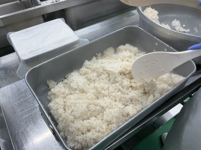 今日は、麻婆豆腐丼です。1年生でも食べやすいよう、4月の麻婆豆腐は辛さ控えめに作っています。
