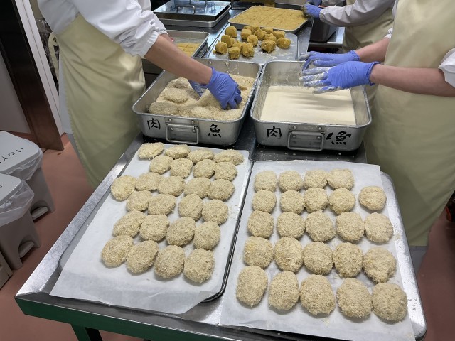 今日は図書コラボ給食として、「こまったさんのコロッケ」を作りました。