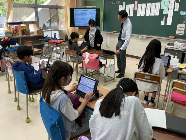 5年生の教室では、いよいよ来月の13日に迫った「川場移動教室」に向けて、キャンプファイヤー係の子どもたちが打ち合わせ中。6年生の教室では、運動会成功のために実行委員が集まり、タブレット画面を囲んで熱い?議論を交わしていました。また別の場所では、今週木曜日に予定されている「委員会紹介集会」に向けて、各委員長が集まり、原稿の推敲を重ねています。