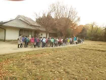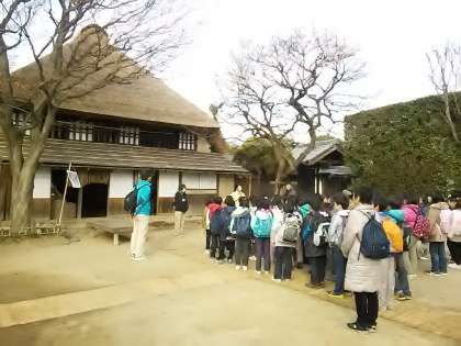 最初の見学場所、次大夫掘公園です。昔の家を見学しています。