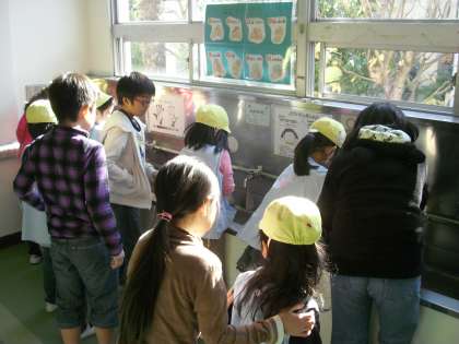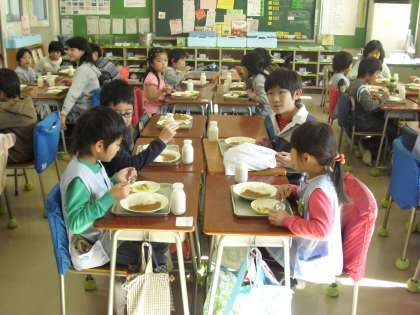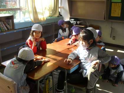 12月14日 桜丘幼稚園の年長さんが笹原小に来て、4年生と給食を食べました。