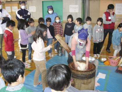 おやじの会の皆様やもちつき係の保護者の方には朝早くからお手伝いいただきました。