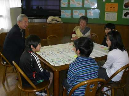 地域の方をお招きして、昔のくらしや遊びについて話をしました。
