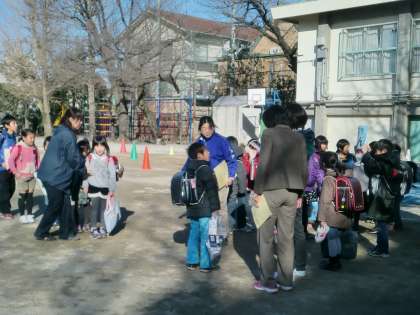 25日地区班登下校がありました。年に3回行われますが、今回が今年度最後の取り組みでした。地区班の教室に集まり、班長・副班長の引き継ぎも行われました。PTA校外委員会の皆様に地区班の旗を新しく作り直していただきました。ありがとうございました。