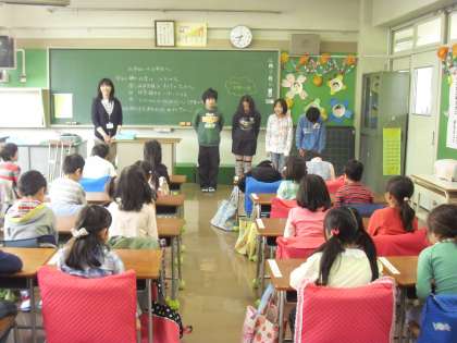 今日の朝読書は、6年生がクラスに来て読み聞かせをしてくれました。