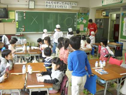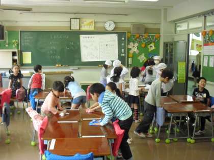 給食の準備 1年生