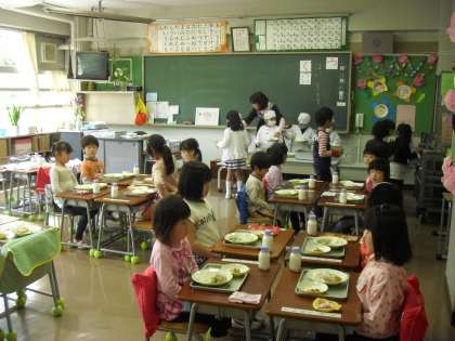 1年生は昨日から給食が始まっています。