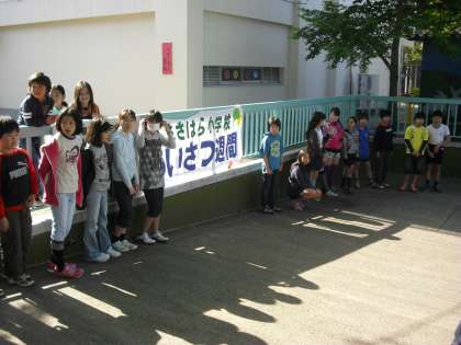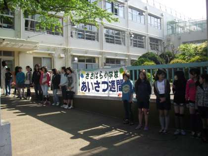 毎朝5、6年生の挨拶キッズが校門に立って元気な挨拶をしています。