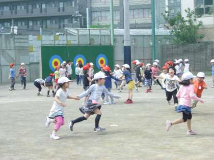 「鬼ごっこ」、「だるまさんが転んだ」「ドッヂボール」とみんなで気持ちよく汗を流しました。