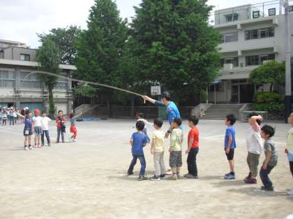 昼休みの時間を長くとり、前半はクラス遊び、後半は長縄跳びに取り組みます。