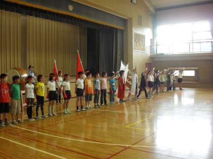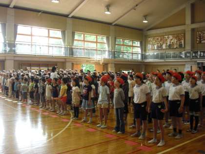 今日の音楽朝会は、校歌と「運動会の歌」の練習をしました。