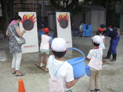 町会、消防団、消防署、経堂出張所、防災課、本校保護者、さまざまな方のお力をお借りして、避難所運営訓練を兼ねた防災学習を行いました。