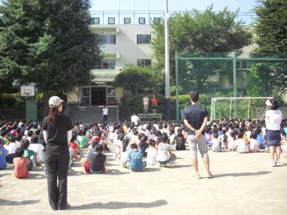 朝から強い日光が照りつけ校庭は焼け石のようです。