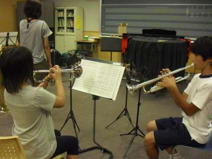 22日午後2時から4時まで、吹奏楽部の体験に本校から5人が参加しました。事前に希望した楽器を手にして、マウスピースを口に当てることから始めました。音を出すことの難しさと音が出てきたときの喜びを体験しました。明日も体験ができるので、「今日よりも音が出せるようにしたい。」と張り切っていました。明日も楽しみです。