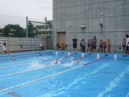 3、友達の泳ぎの良いところを見つけ、自分の泳ぎに生かそうとする態度を身につける。4、友達の頑張りを応援する。