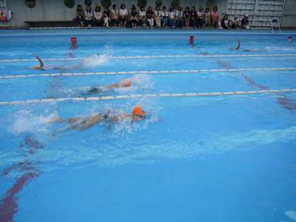参加した6年生は、力いっぱい泳いでいました。各種目のタイムを計った後、全員リレーに取り組みました。