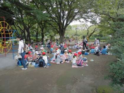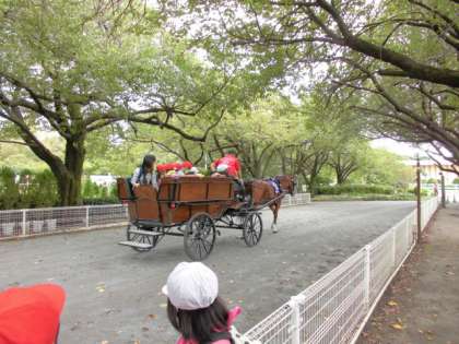 曇り空のもと、1年生は、馬事公苑へ遠足に行ってきました。
