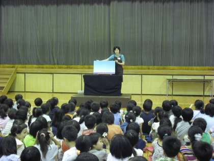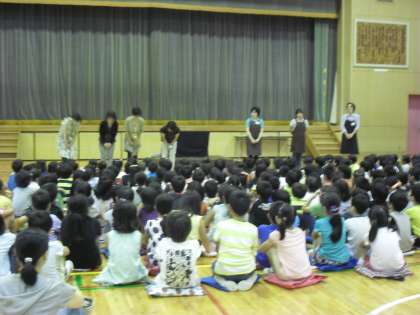 体育館に集まり、手遊び、素話、大型絵本などを楽しみました。