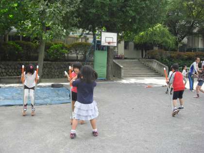 風も収まり、昼休みには校庭に笑い声が響きました。