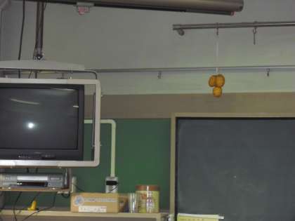 これだけ大量の柿の皮をむき、吊るし紐を通し、わざわざ歩いて学校まで届けていただいたサンタさんに感謝です。