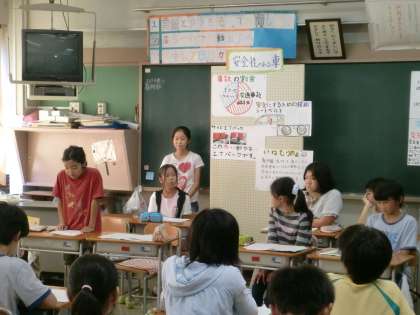 高学年の目指す子ども像は「一人一人の考え方や感じ方の違いを認めながら話し合う」です。6年生は、「未来の家」「未来の車」についてパネルディスカッションを行いました。
