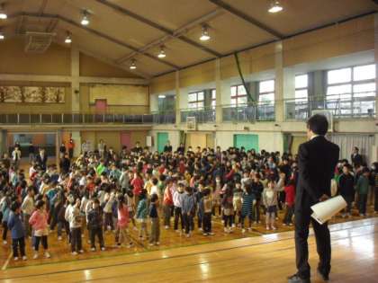 寒い中、しっかりと話を聞く姿勢が立派でした。