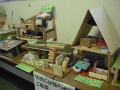 造形クラブの作品や4年生のツリーハウス、目の教室の活動等を展示しています。