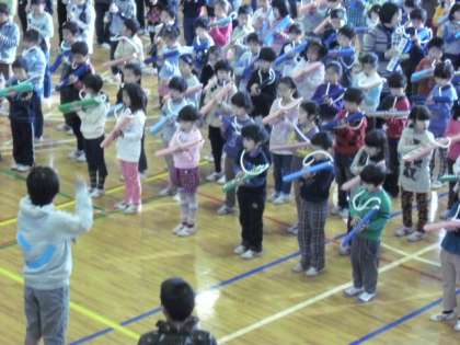 寒い体育館の中に明るい笑顔と楽しいリズムが響きわたりました。