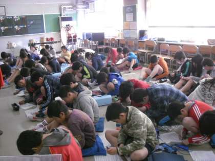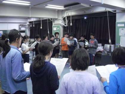 学年全体で声出しをしてからパートに分かれて練習しました。