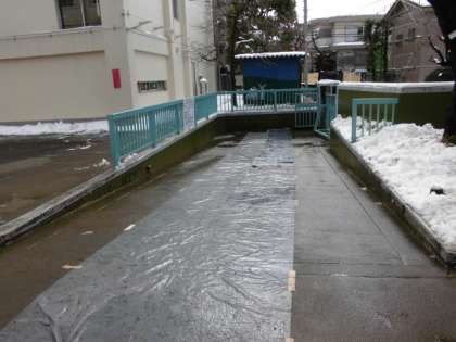 今日のお昼前、おやじの会の皆様が学校の中や周辺の雪かきを