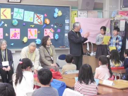 生活科の時間に地域の方に来ていただき、昔の遊びを習いました。