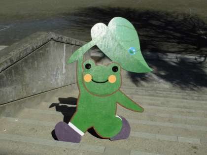 校庭が使えないことを知らせる「かえる」さんがリニューアルしました。