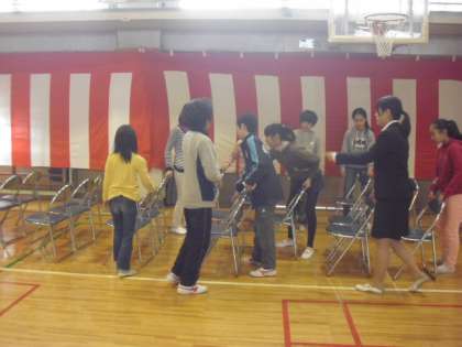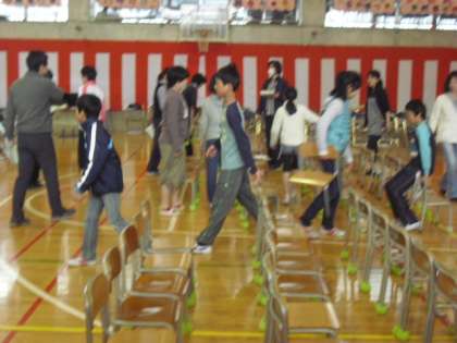 会場となる体育館を整備し、教室のそうじと飾り付けをしています。