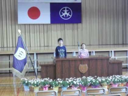 入退場と「歓迎の言葉」と校歌の練習です。