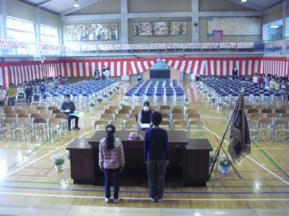 会場設営後、入学式の練習をしました。