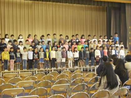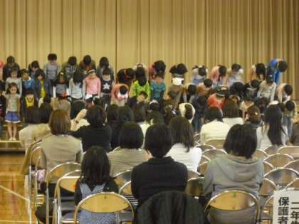 保護者会の前に、入学式で演じた舞台をご披露しました。