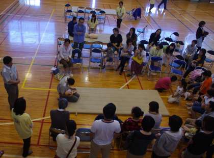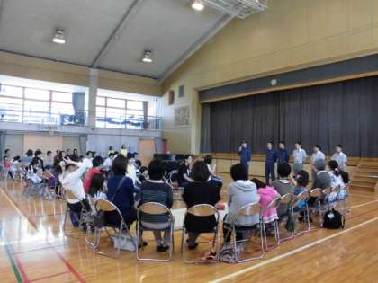 5月17日(土)午前10時より、体育館において「AED講習会〜簡単な救命救急〜」と題して、家庭教育学級が行われました。世田谷消防署宮の坂出張所 隊員の方に指導していただき、人形を使って心臓マッサージについて実践的に学びました。