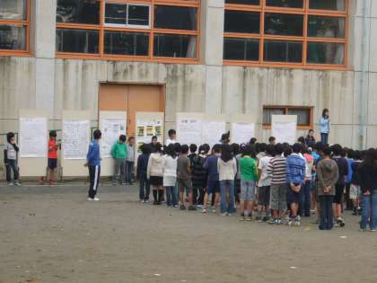 説明するときに使ったパネルは、学校の玄関に掲示しています。