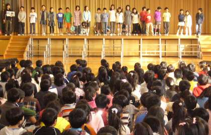 後期委員会の代表が、各委員会の活動内容紹介、全校児童へのお願い等を発表しました。