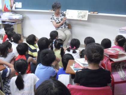 子どもたちは、お話しポケットさんの読み聞かせを楽しみにしています。