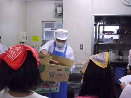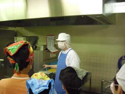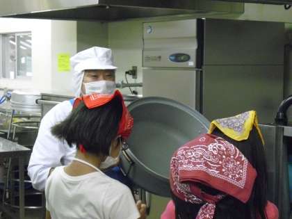 保健給食委員会のみなさんが、給食室を見学させていただきました。家庭のものとは違う大きな釜やしゃもじにびっくり!2学期には委員会の活動で、全クラスに見学したことを紹介します。