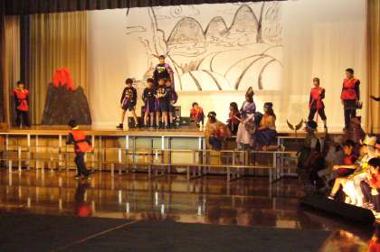 左の写真は、4年生「そんごくう 2009」です。右の写真は、6年生「魔法をすてたマジョリン」です。