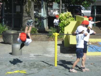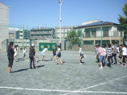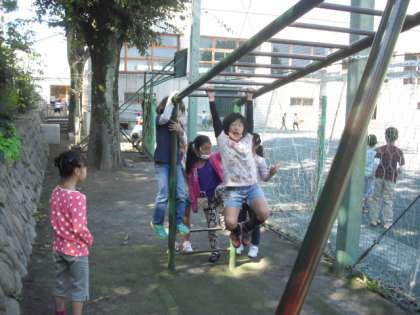 中休みにたくさんの子どもたちが校庭に出て遊んでいます。