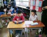 2人で話し合って対話劇を作りました。友達と話し合い、台本を作りました。皆の前で発表し、互いのよさを見つけることができました。
