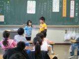 低学年の目指す子ども像は「相手を大切にして、話したり聞いたりする子」です。2年生の研究授業は、「2人で話し合ってげきを作ろう」です。目標は、「身近なことや経験したことなどから話題にそって対話劇ができる。」です。