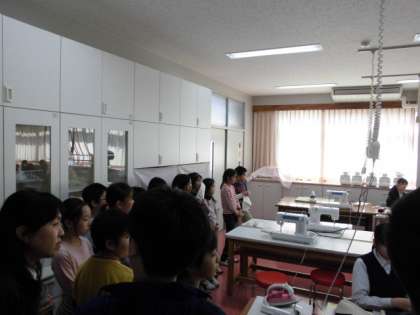 子どもたちはグループに分かれて、中学生の授業に取り組む様子を興味深く見学していました。