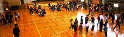 体育館は、玉入れ、輪になって片足立ち、おんぶして10数える、手をつないだままフラフープをくぐる、ボール送りをしてシュートする、風船バレーボールの6つのコーナーでした。