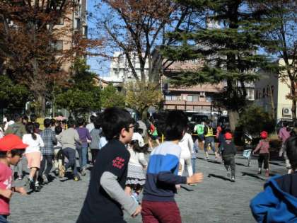 終わった後、何週走ったかを口々に話していました。
