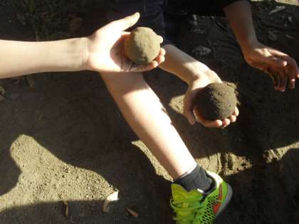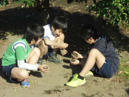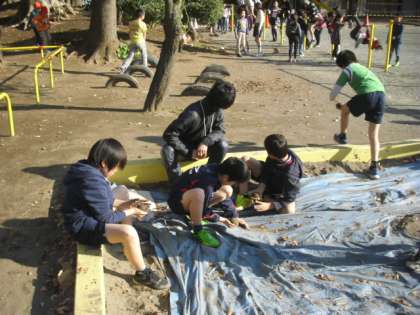 昼休みに校庭の端で無心に泥団子をつくっていました。