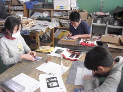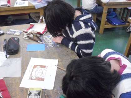 木版画で年賀状を作成しています。